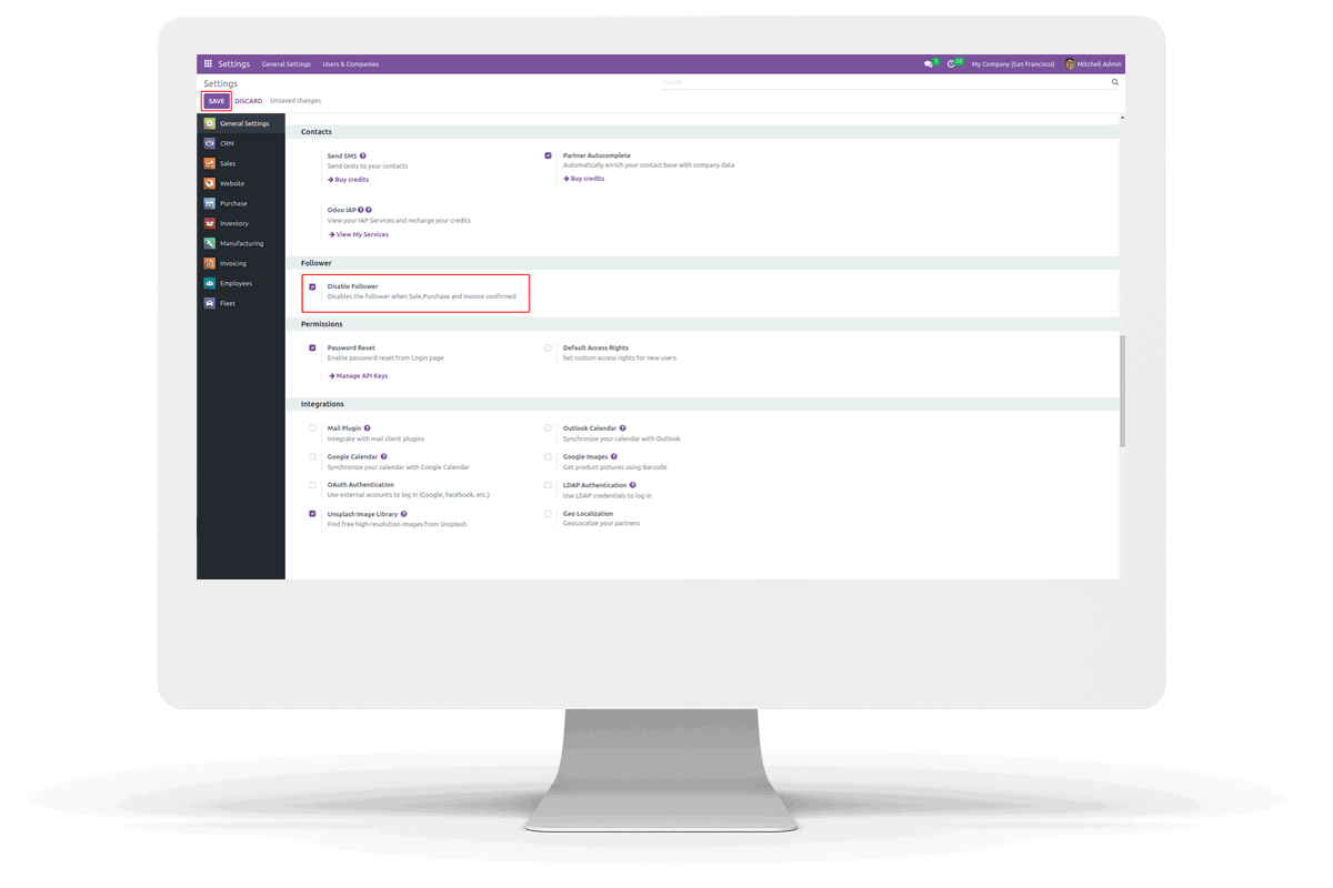 While confirming a Purchase Order, we can see that only the user is added to the follower. Here the vendor is restricted to be a follower.