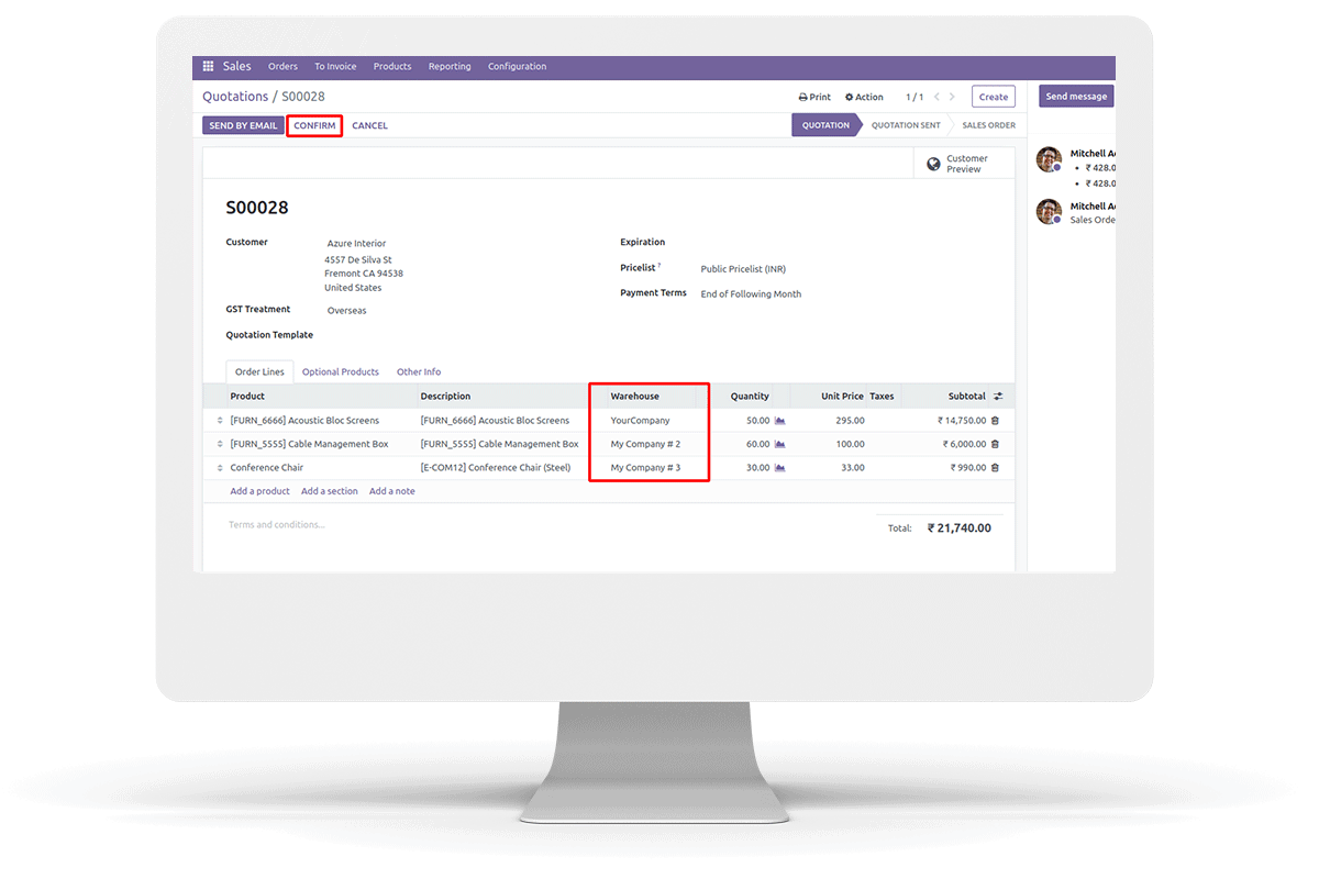 This module will help you to set warehouses per sale order lines and the picking will be created for the selected warehouses separately.