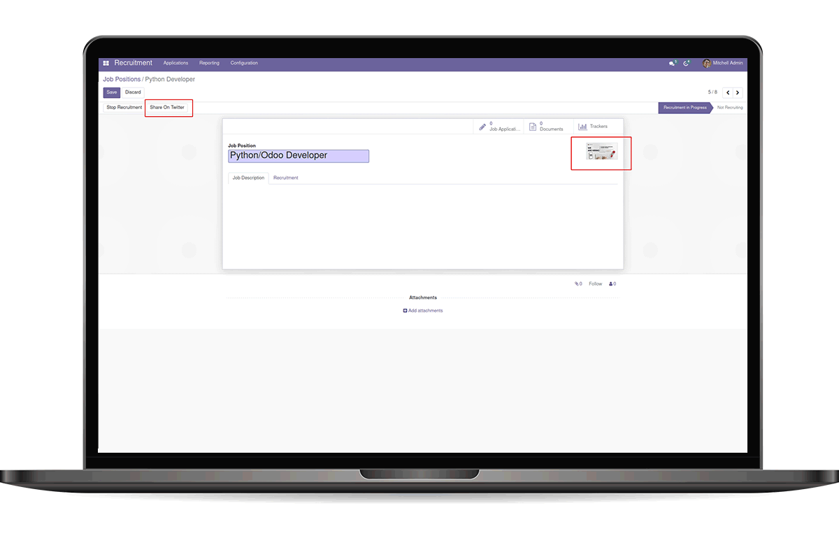 This integration module makes your HR recruitment better. You can share your Job positions directly to Twitter .
