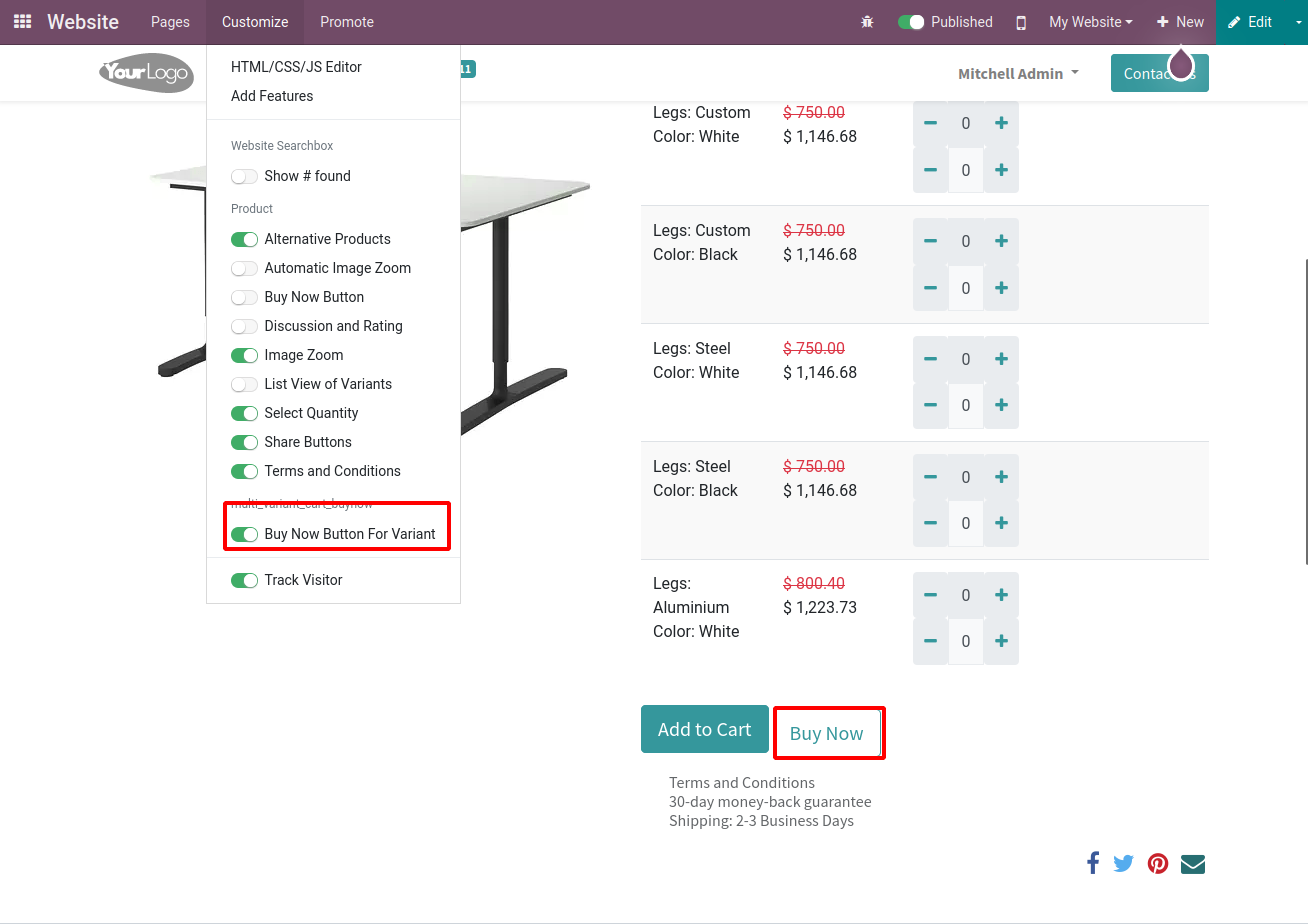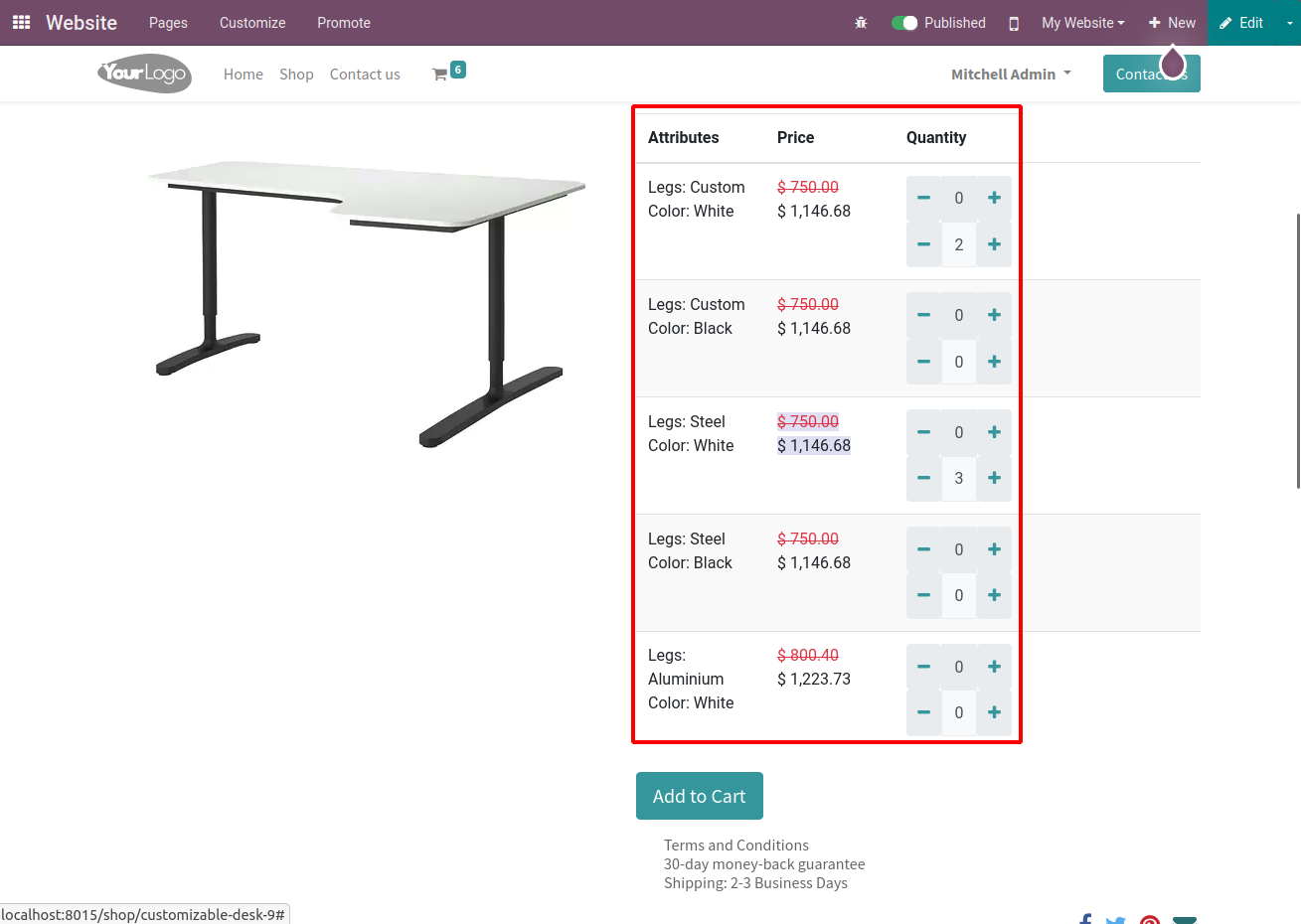 Customers can Add Multiple Variants of Products with Different Quantities to the Cart