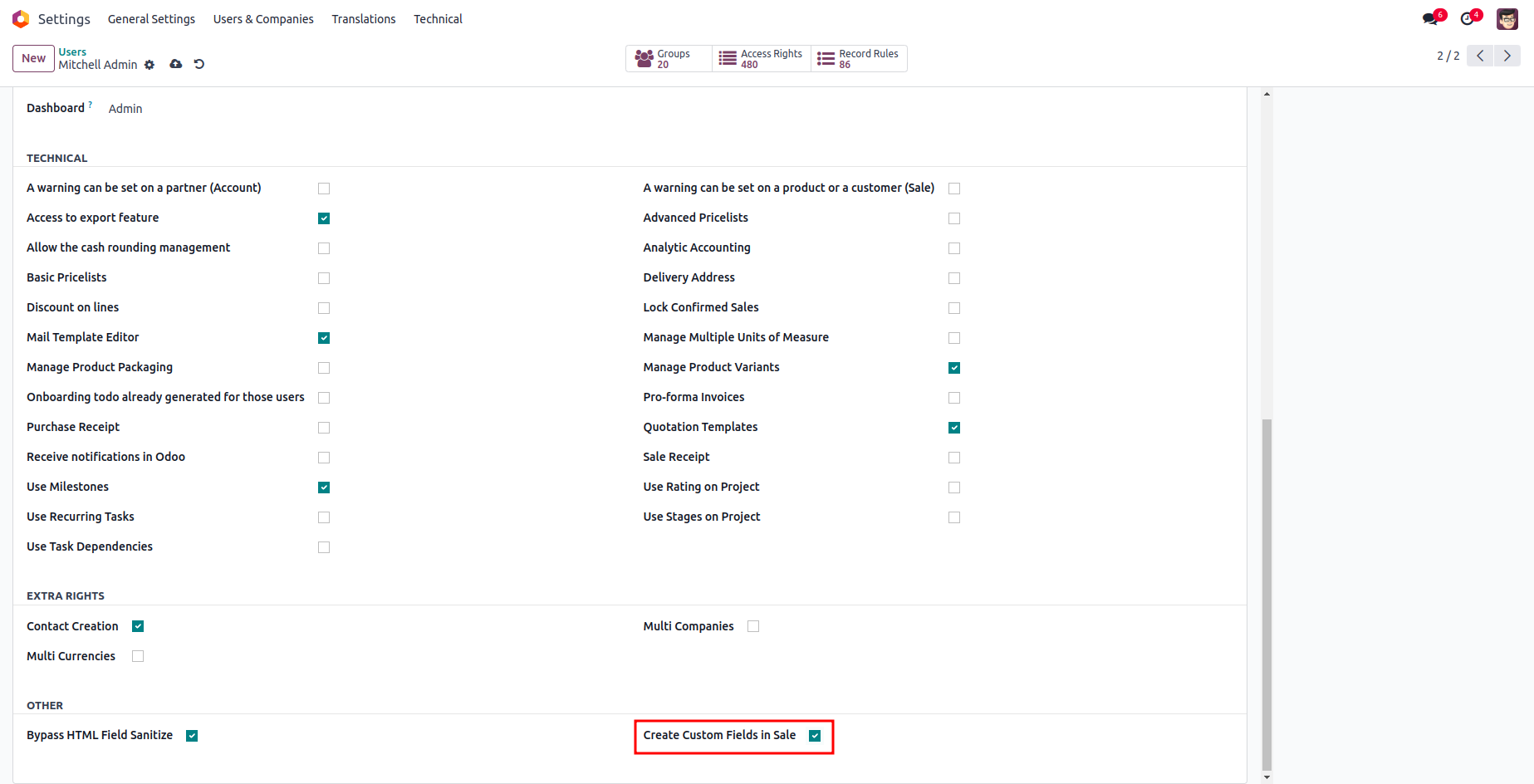 After Installation, Give Access to the User to 'Create Custom Fields in Sale' from User Settings.