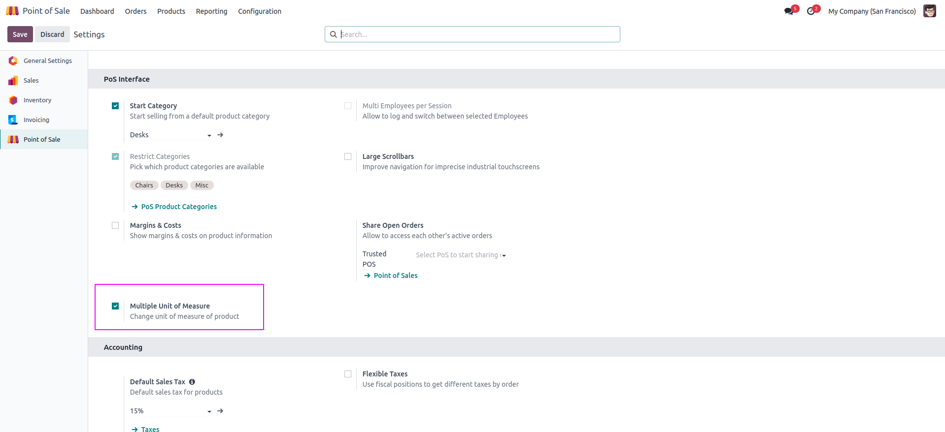 'Multiple Unit of Measure' Option in POS Configuration Setting .