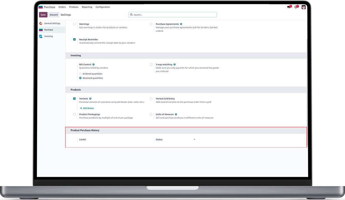 Set Limit and Status[All, RFQ, and Purchase Order] for purchase history