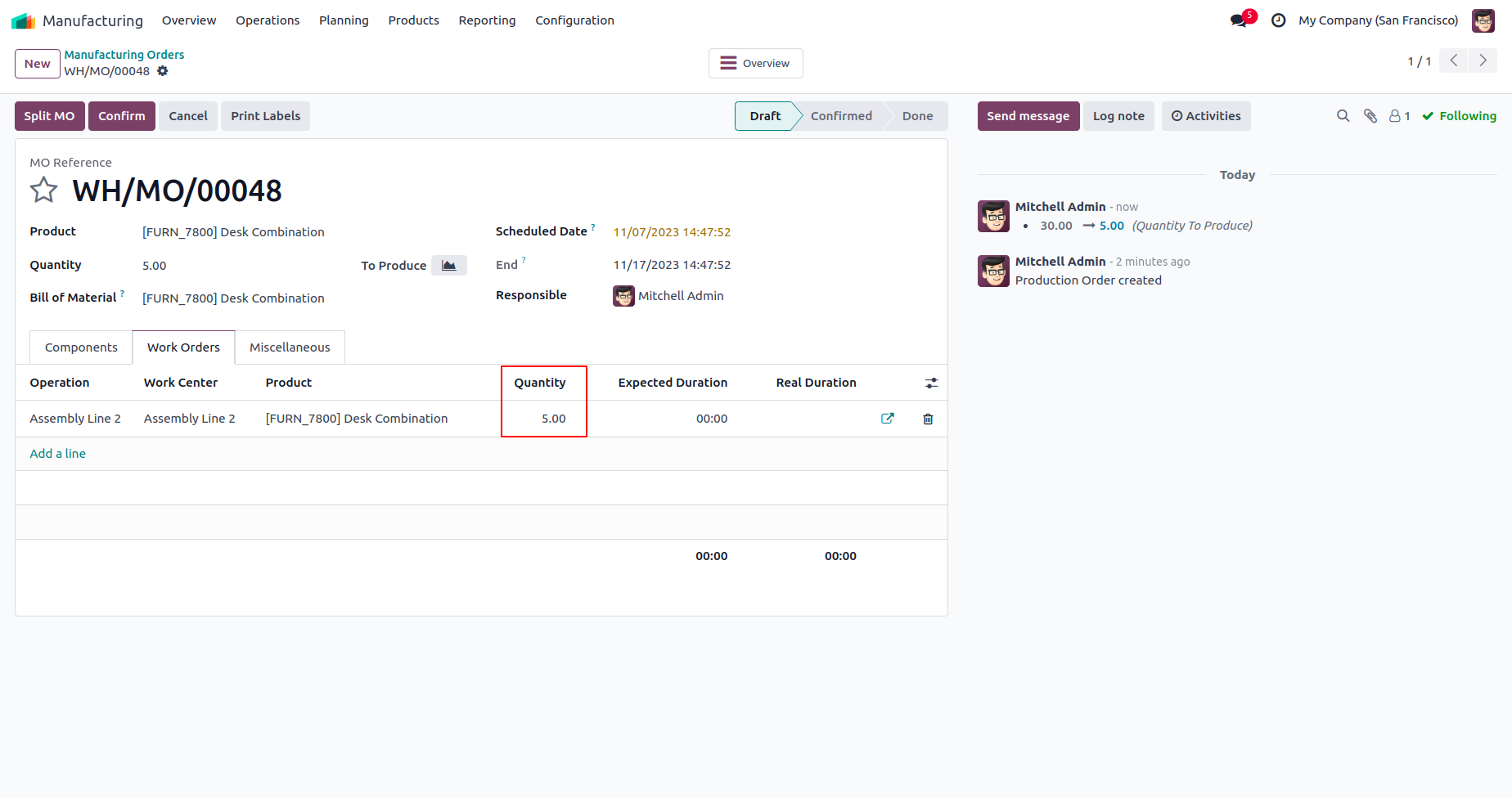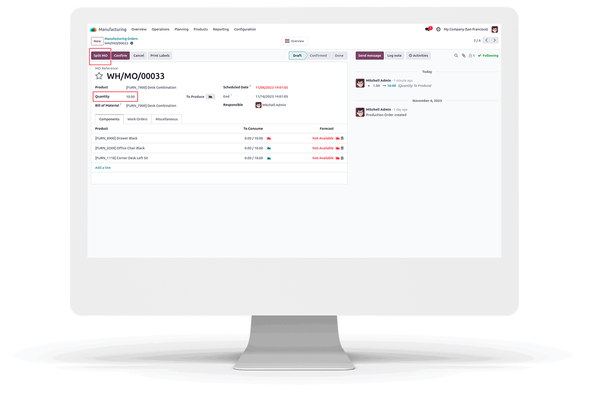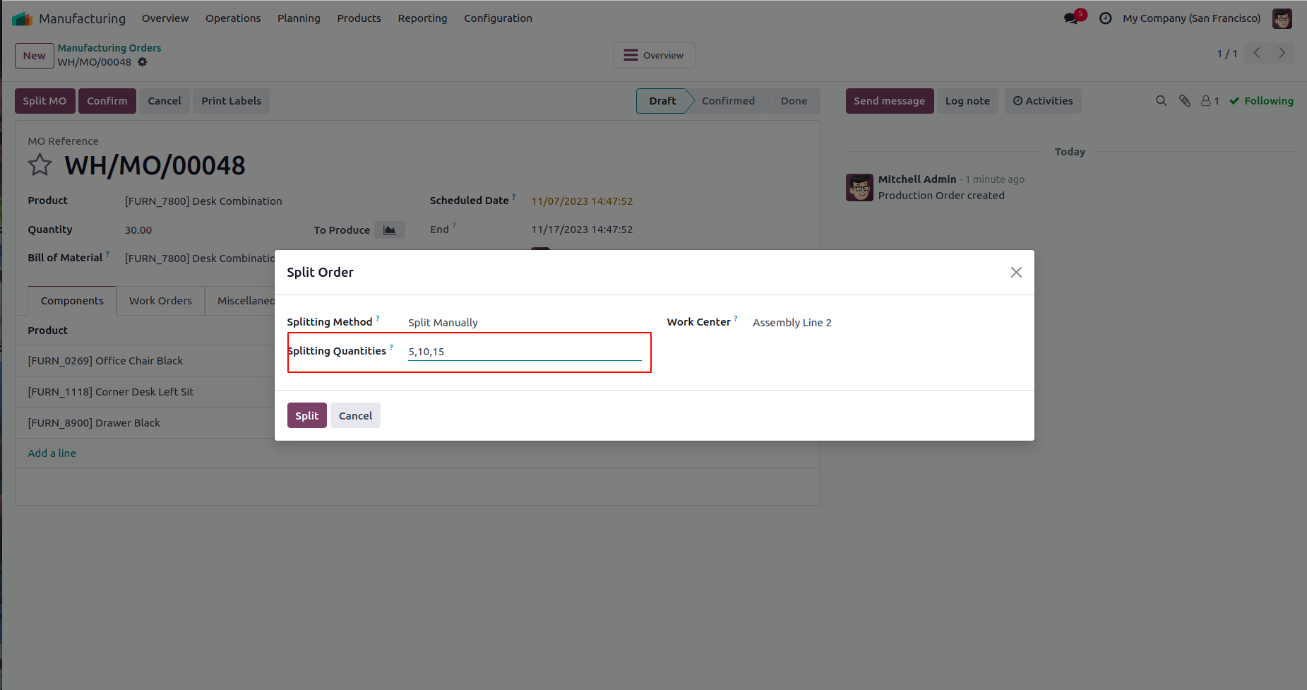 Allows different types of Splitting in Manufacturing Order Also we can set Work centers for each split.
