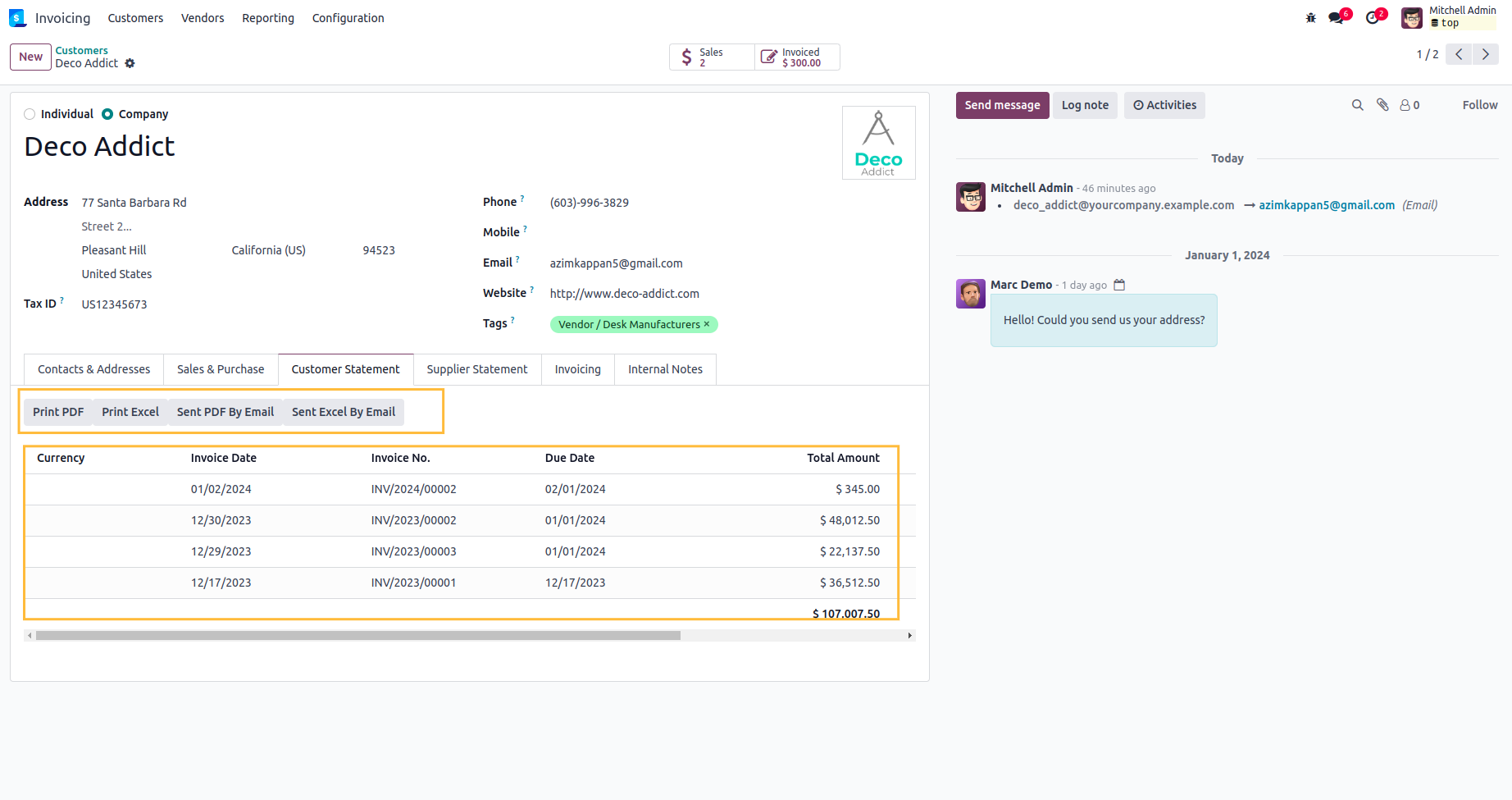 Customer and Supplier Statement in Contacts.