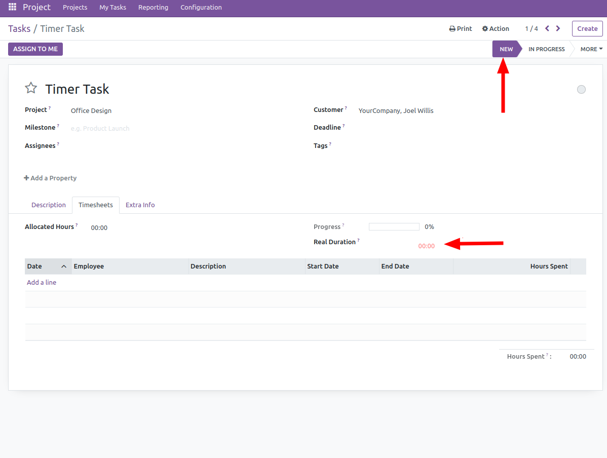 A real duration field will be seen on the timesheet page. In the other stages the timer won't be run, and also timesheet not be recorded.