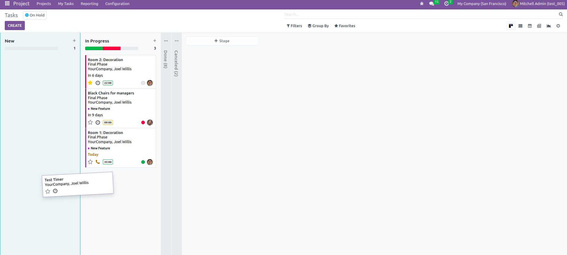 Automatic Running Timer for Project Tasks at the Configured Stages.
