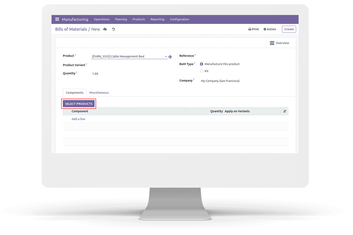 Click 'SELECT PRODUCTS' button in BOM to add multiple components.