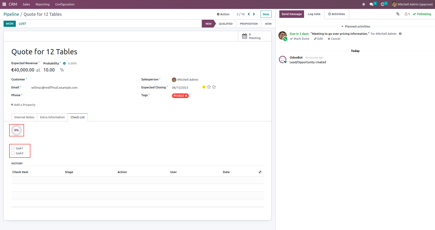 The history of checklist items can be viewed in the Checklist page of the opportunity.