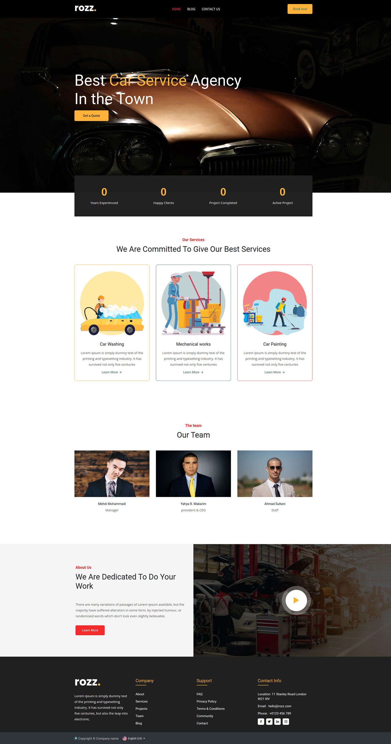 Theme Rozz is a attractive and unique front-end theme mainly suitable for Corporate website. Many custom designed snippets facilitates to add better user experience. Contains easy to drag pages like about page , portfolio page , services page and Blog page . You can drag and drop the snippets and customize them the way you want