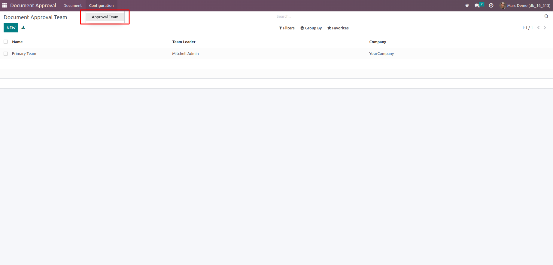 Go to Configuration -> Approval Team we can see the Approval Teams
