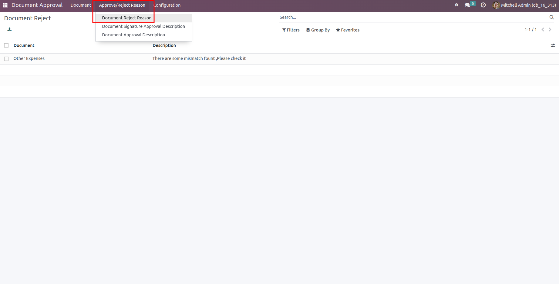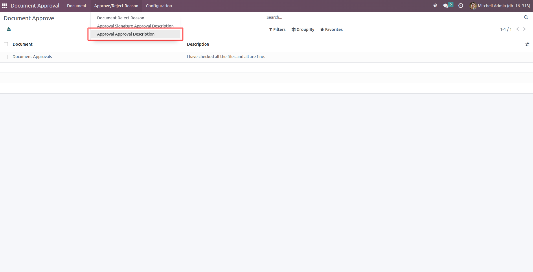 Go to Document Approval -> Approve/Reject Reason click on the Document Approval Description menu