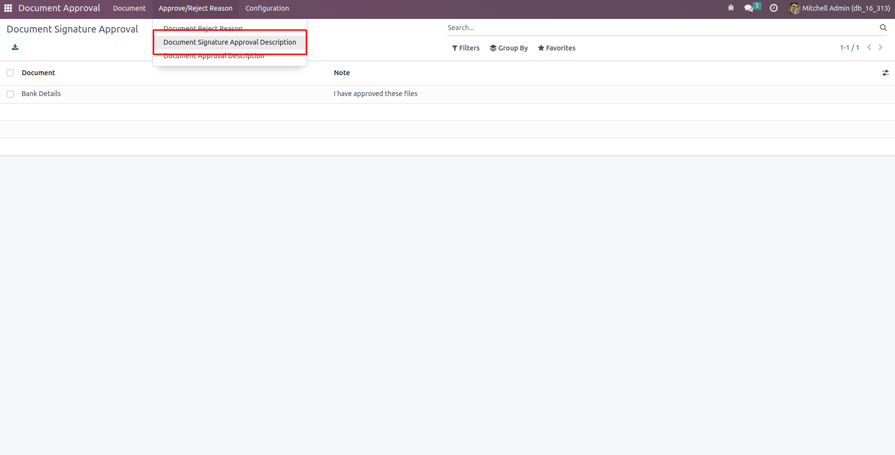 Go to Document Approval -> Approve/Reject Reason click on the Document Signature Approval Description menu