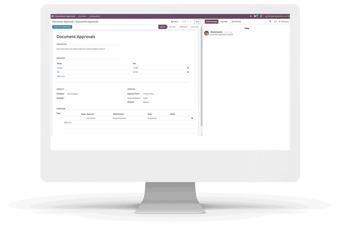 By clicking SENT FOR APPROVAL,approvals goes into waiting state