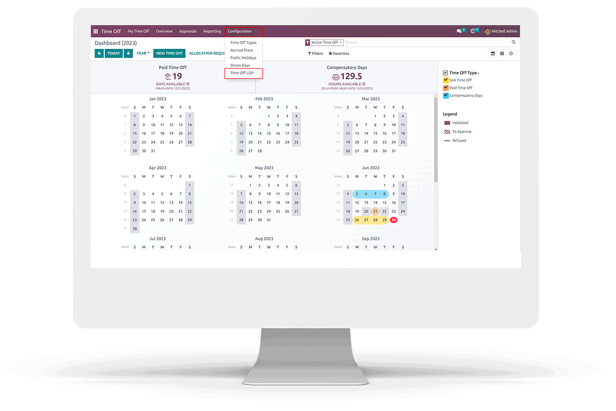Go to Time Off => Configuration => Time Off LOP. Create LOP structures.