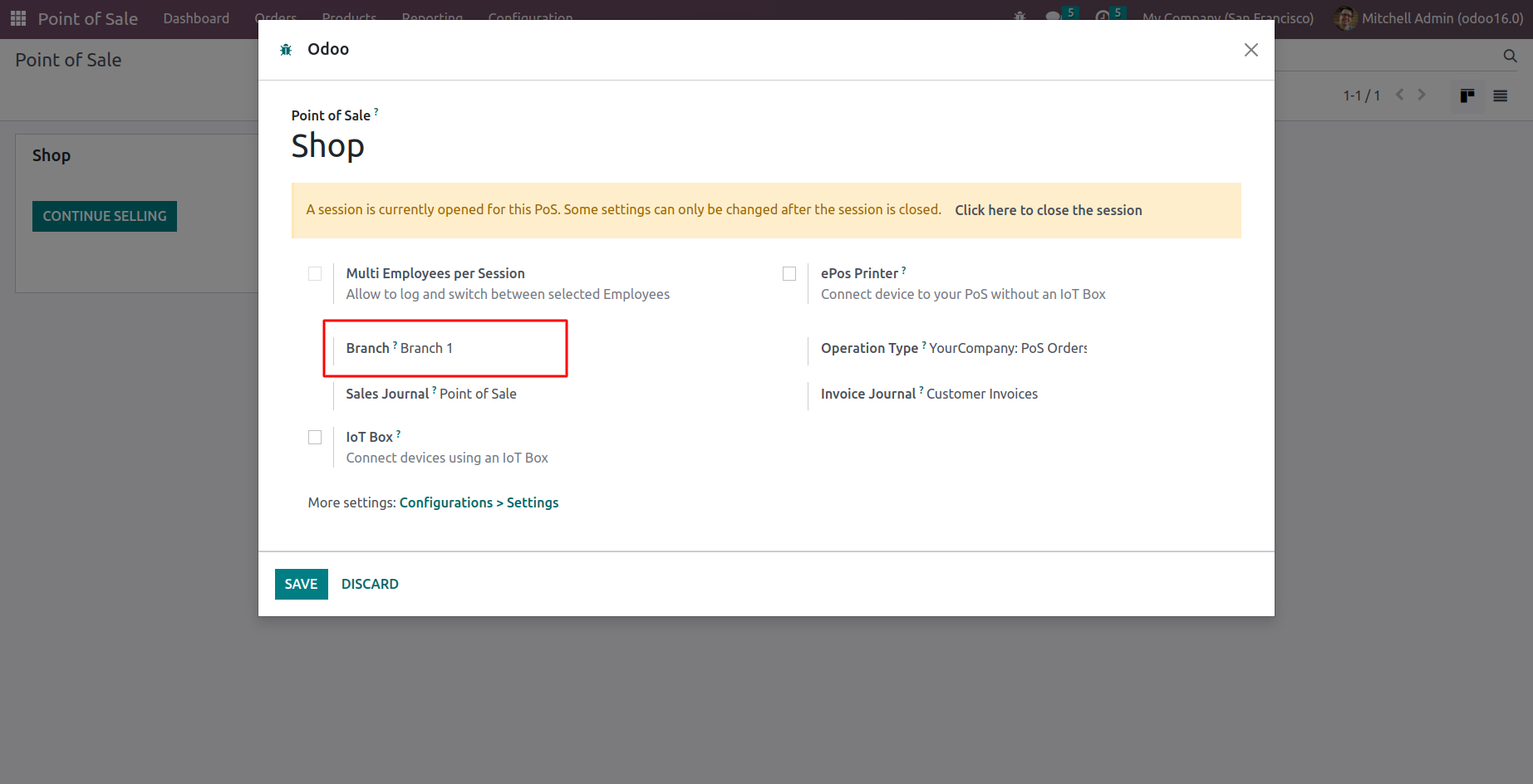 This module helps to control multiple branches of a single company on POS.Here a branch can be set for each POS.After configuring a branch for a POS, then thereafter all the operations related to the particular POS will be related with the branch. This module requires the base Branch module.After installing the base Branch module and POS Branch addon, the user can implement the branch concept on Odoo POS.