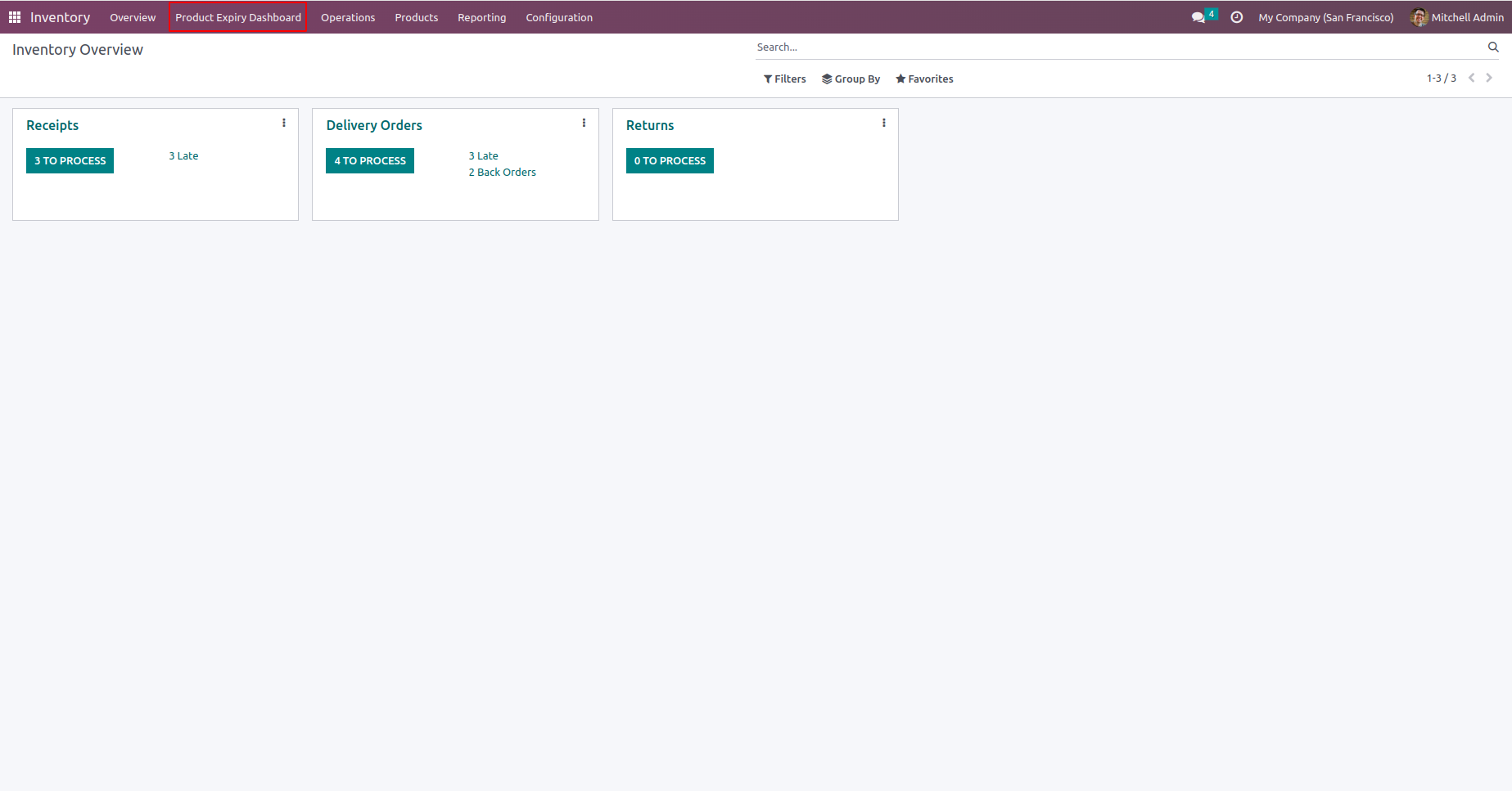 Navigate to Inventory --> Product Expiry Dashboard menu.