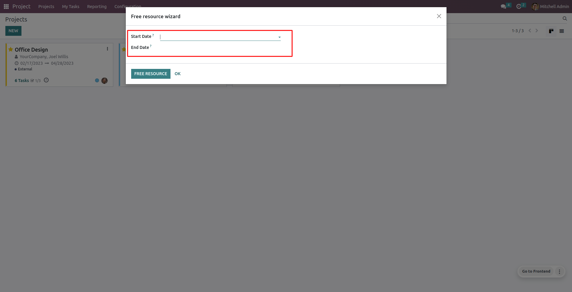 Wizard for add the date filter(When filter applied users without any project between those dates will lists).