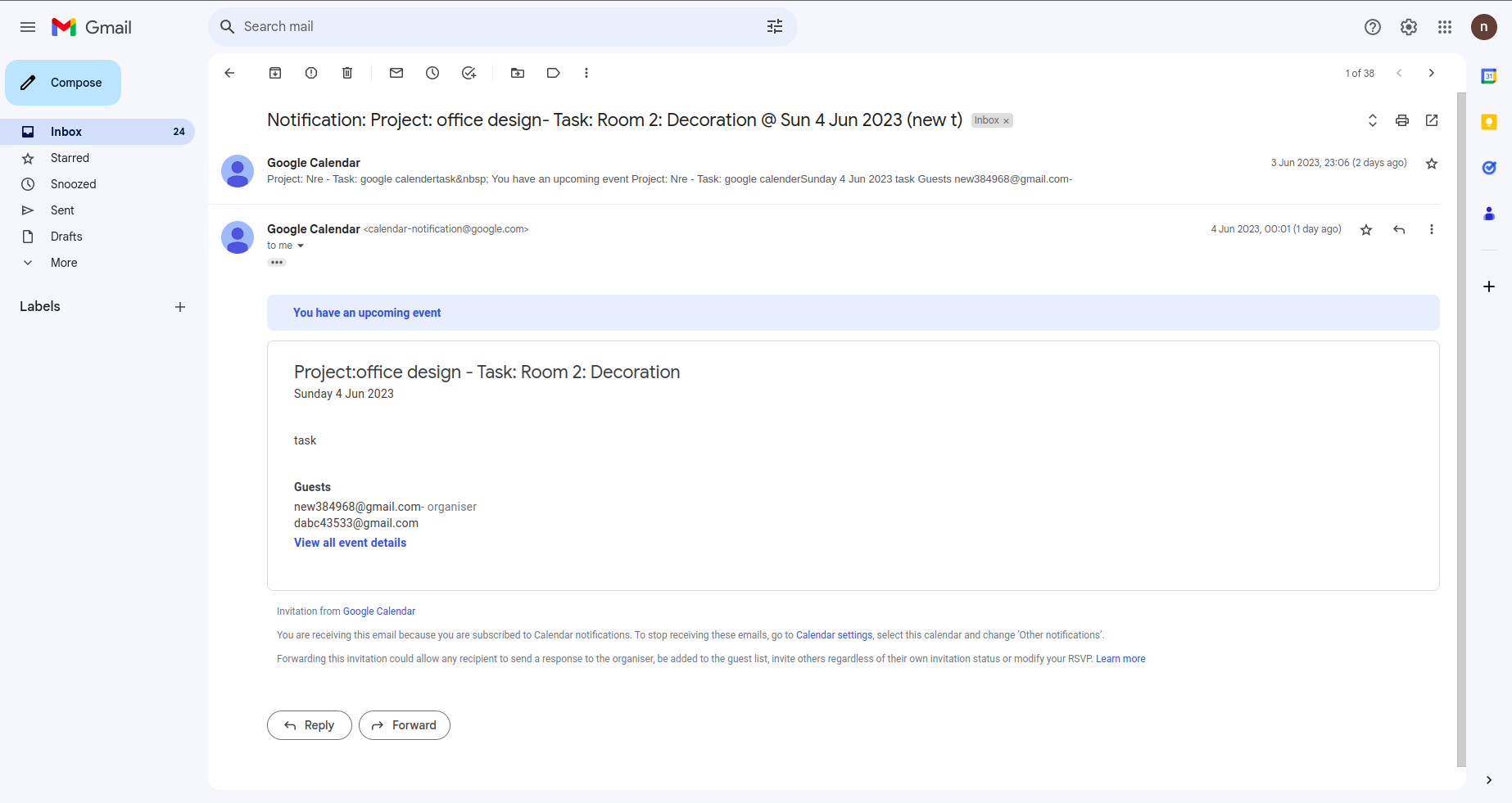 User can see updated google calendar event as per task.