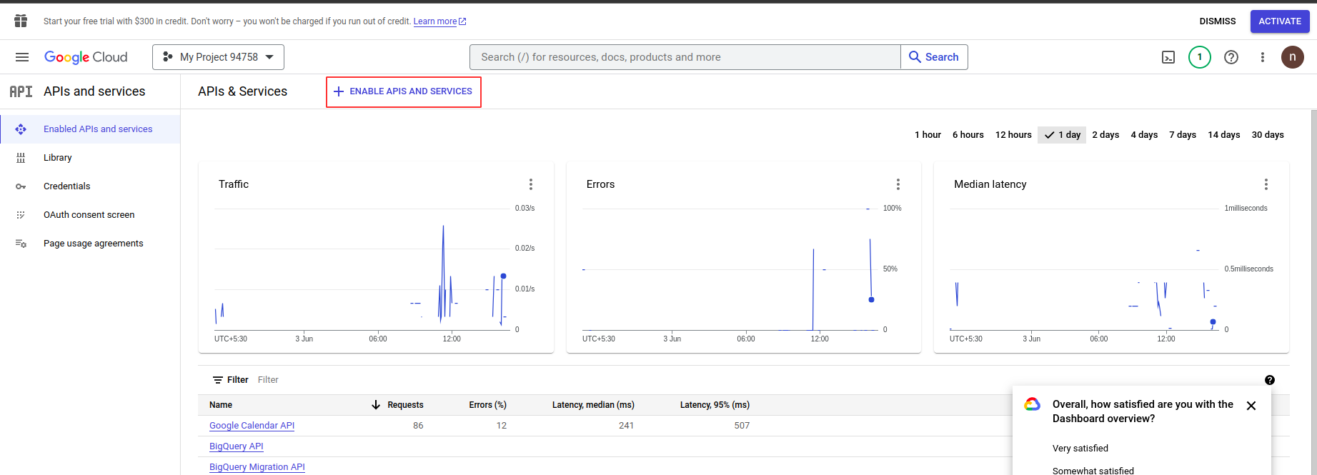 User have to navigate to "Google API Console" and click on "ENABLE APIS AND SERVICES".