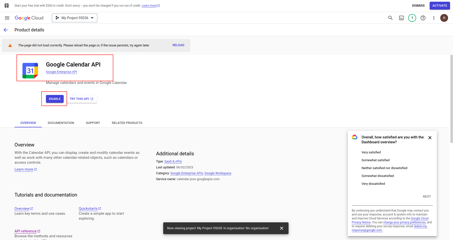 Search for "Google Calendar API", Open and click "Enable" to use.