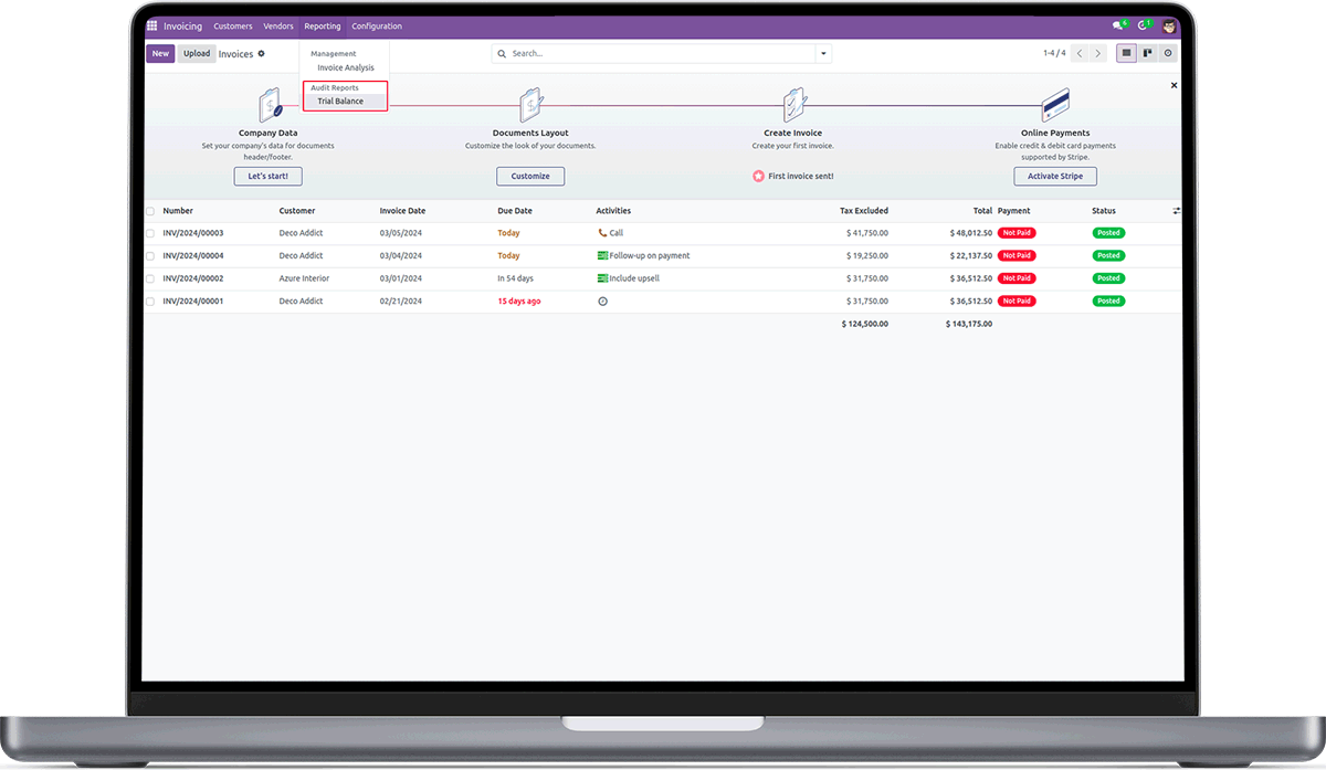 • This module allows you to download the trial balance pdf report in the Accounting Module.