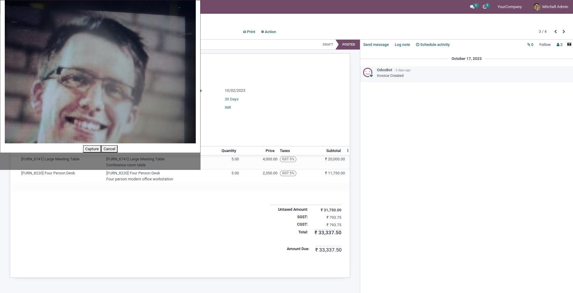 By clicking on the camera button, we will have a camera screen. We can add captured images to chatter by clicking Capture button.
