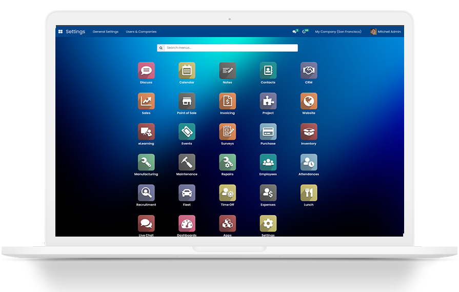 The App Menu is the main attraction of the Jazzy backend theme. It has a fully responsive layout with a new highlighted color combination and a more modern interface for all applications. Moreover, the Jazzy backend theme improves your experience with Odoo, providing you with a fully customizable background image, Navbar color, and many more.