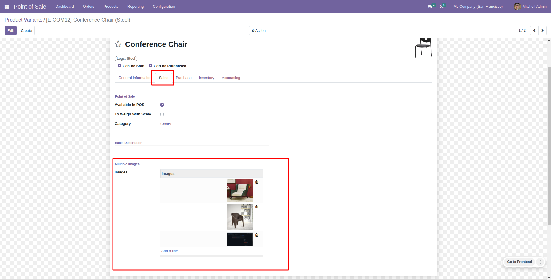 Under the Products menu : Products --> Product Variants --> Choose a product --> Open the Sale Tab. We can add Multiple Images under the Products Sales Tab