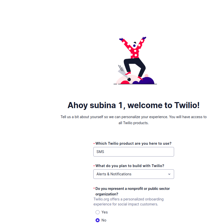 After fill a form on which we have to mention the product details we want to get from twilio platform.