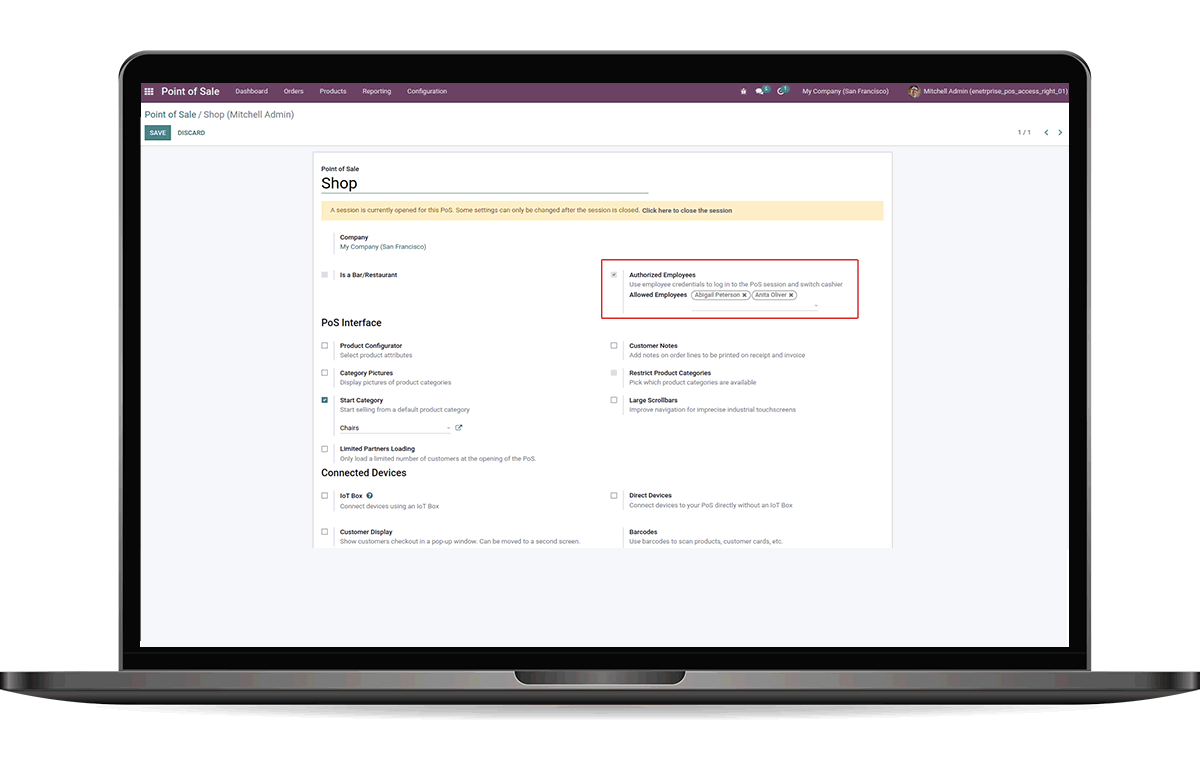 Allows to Enable or Disable POS Features Depending on the Access Rights Granted to the Cashier.
