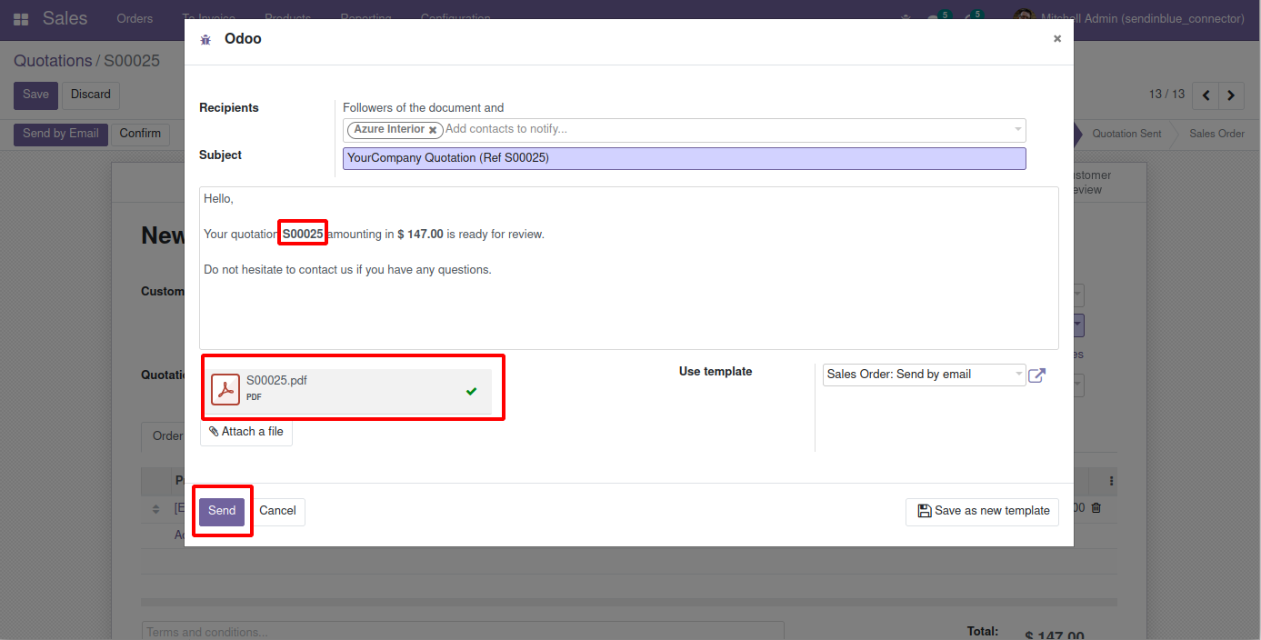 Going to send a quotation to the customer.