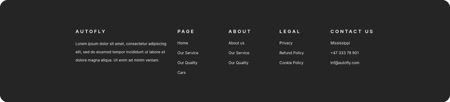 The most recent website creation for an autofly. Flexible and simple to use.