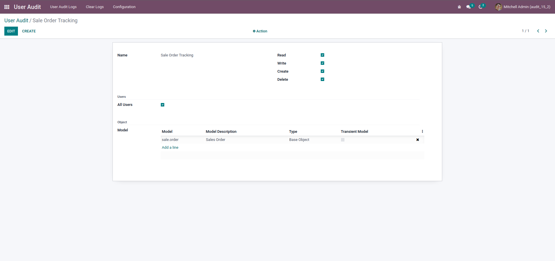 By setting up for tracking the write operation form the user audit edit and do some write on the specified model.