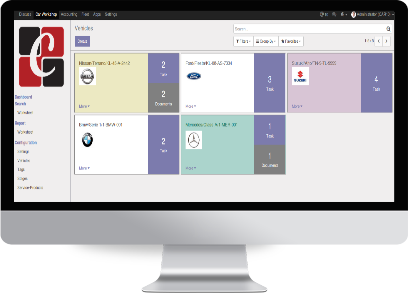 Car Workshop Management is a Cybrosys Generic Module to manage automobile workshop with great ease. Keep track of everything, like vehicle owner details, Works assigned, Bill details of service provided,etc..