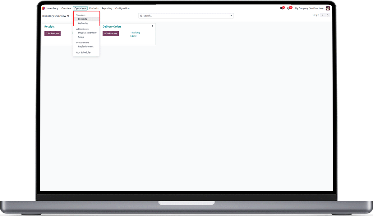 Under Operations tab take any one transfers(Receipts/Deliveries)
