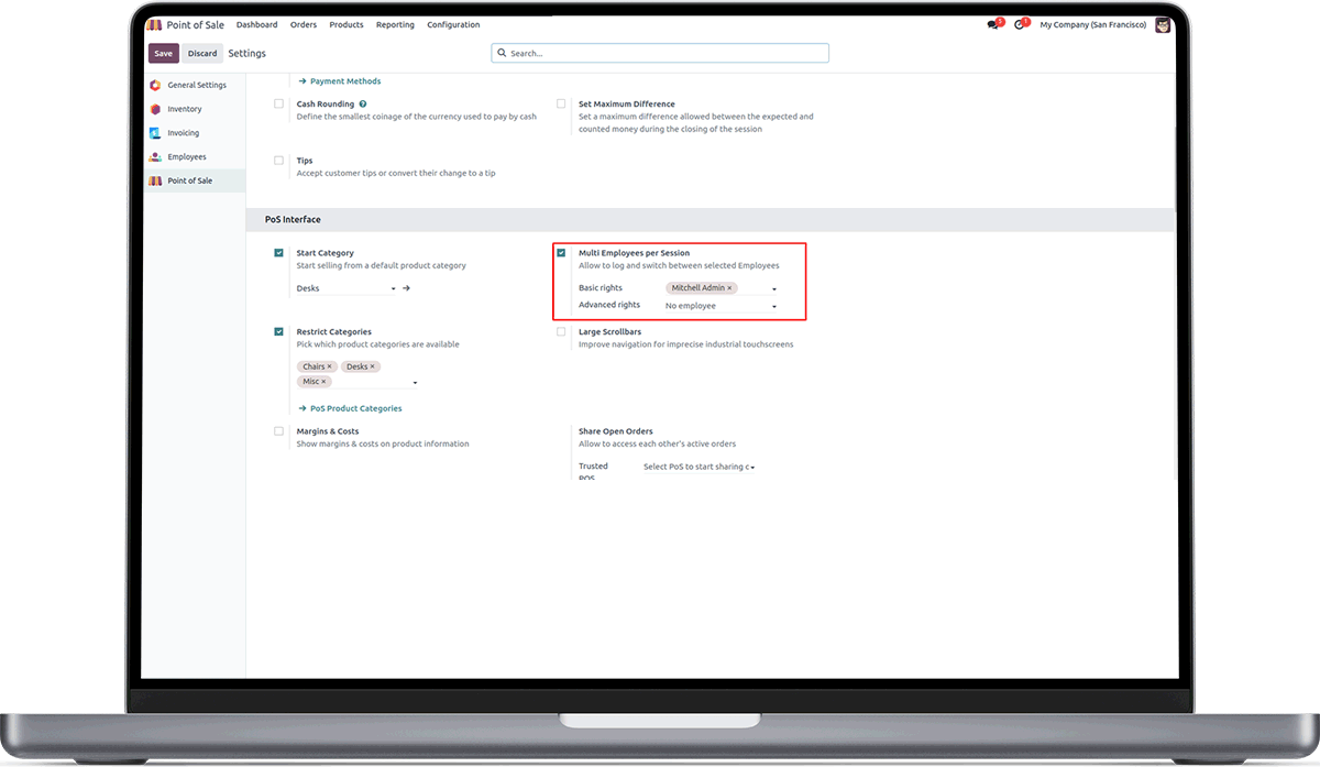 This app allows you to enable or disable POS features depending on the access rights granted to the cashiers.