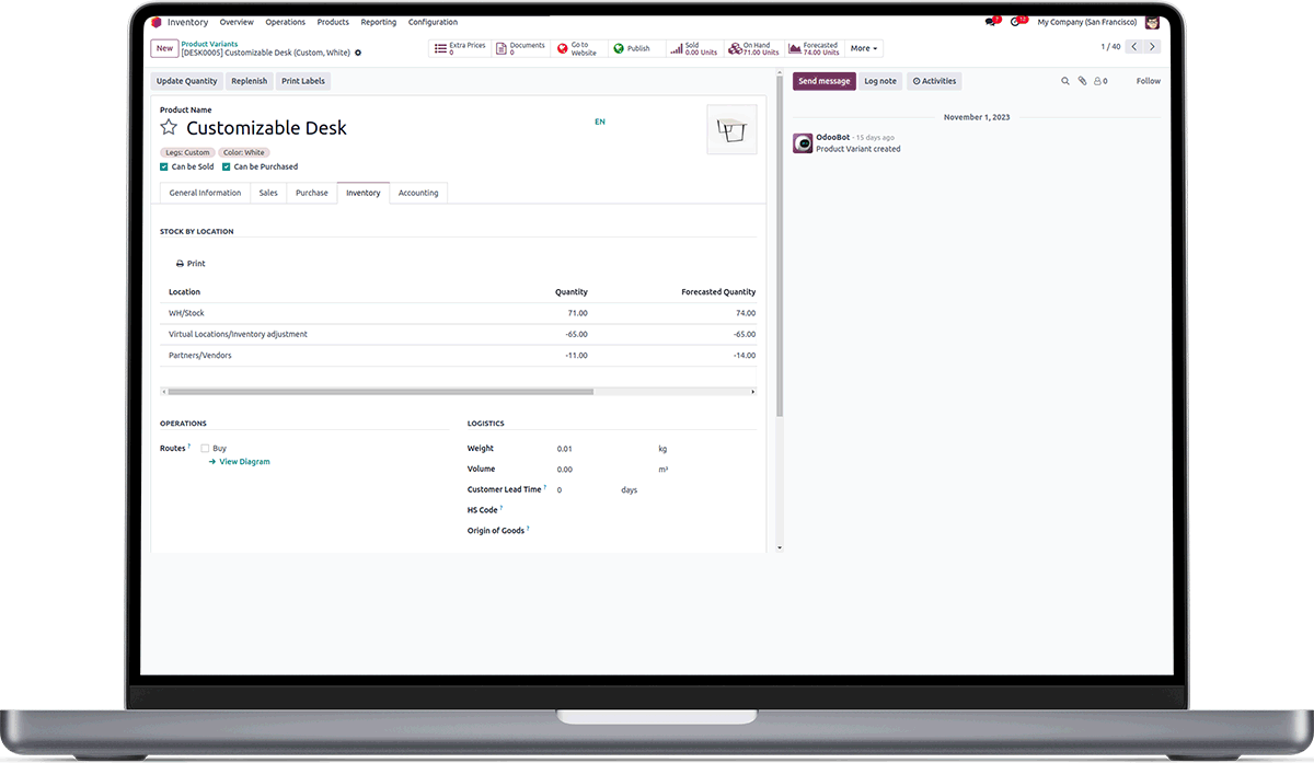 Get an overview of Available, Forecasted, Incoming and Outgoing quantity of product from the product form.