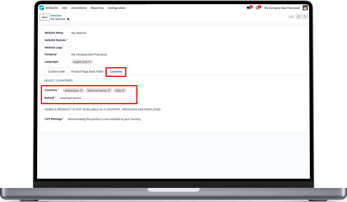 Set Countries in the backend.