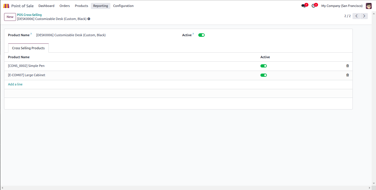 Navigate to Point of Sale → Configuration → POS Cross-Selling. From this menu, you can select and configure cross-selling products for different items.