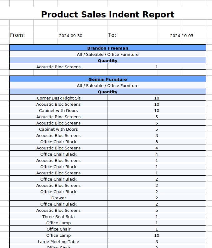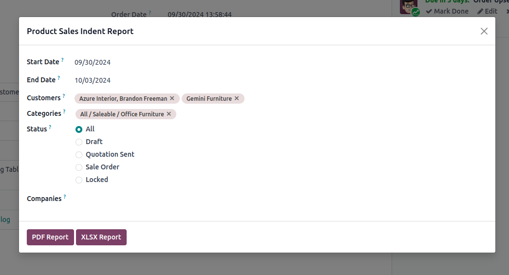 Select the Sales Indent Report menu, choose the required fields for filtering, and click on the desired report format.