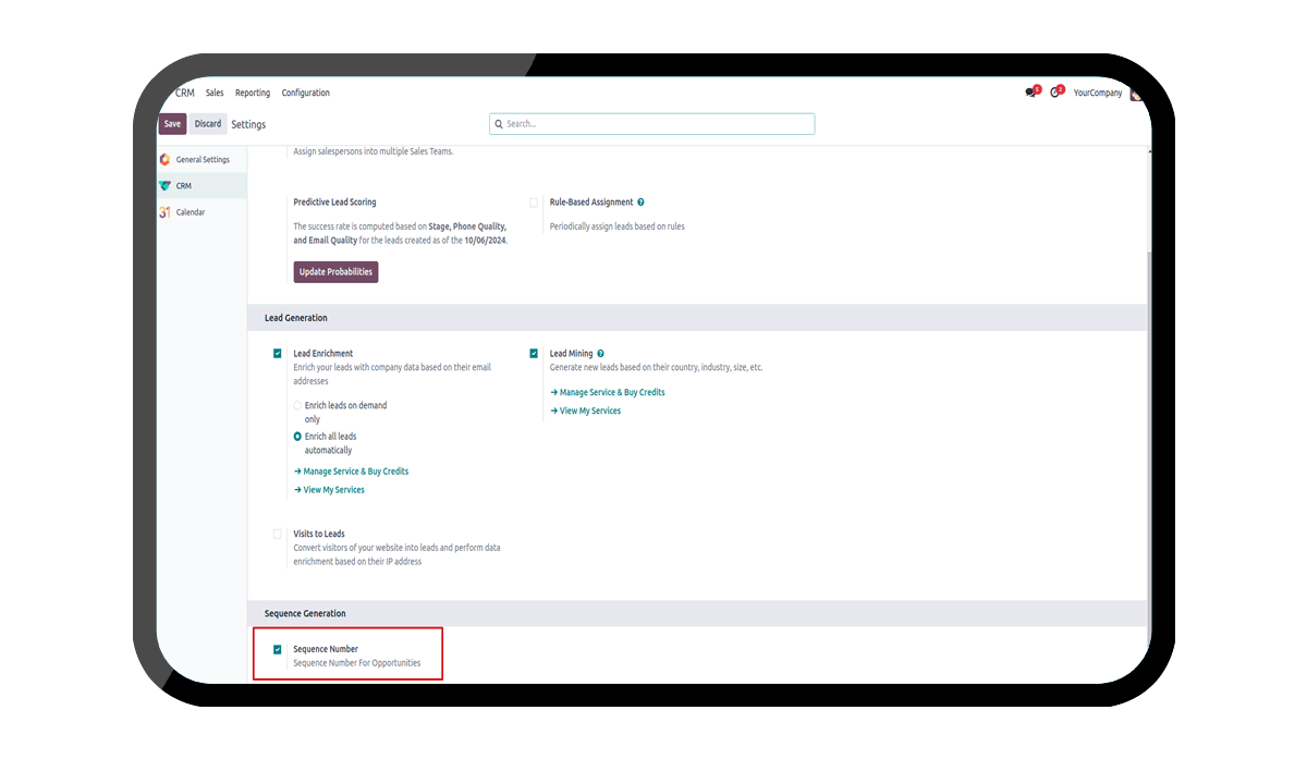 The module uses a predefined sequence to generate unique numbers for each CRM opportunity. When a new opportunity is created, the module automatically assigns the next available number in the sequence.