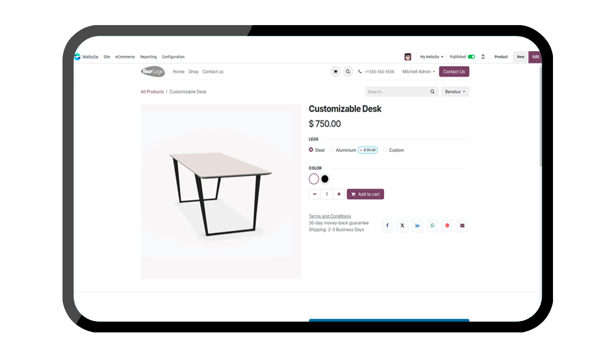 If Company WhatsApp Number is added, an INQUIRE button will appear on the shop product page.