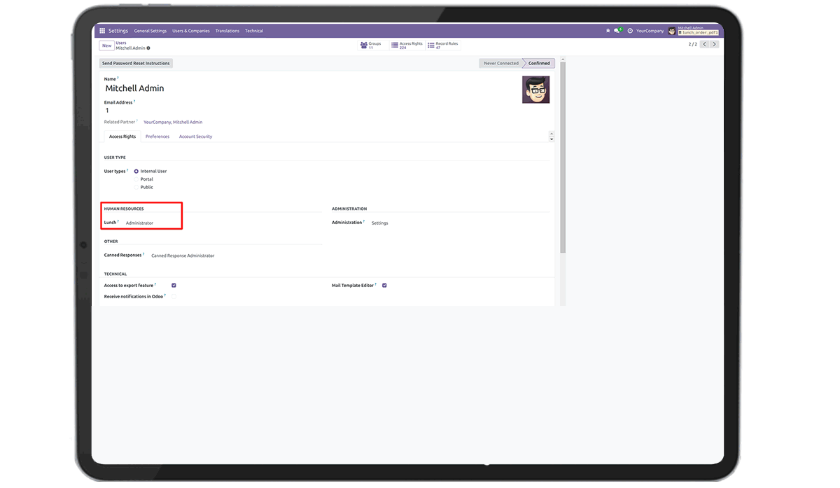This Module Allows to Generate PDF Report for Lunch Orders