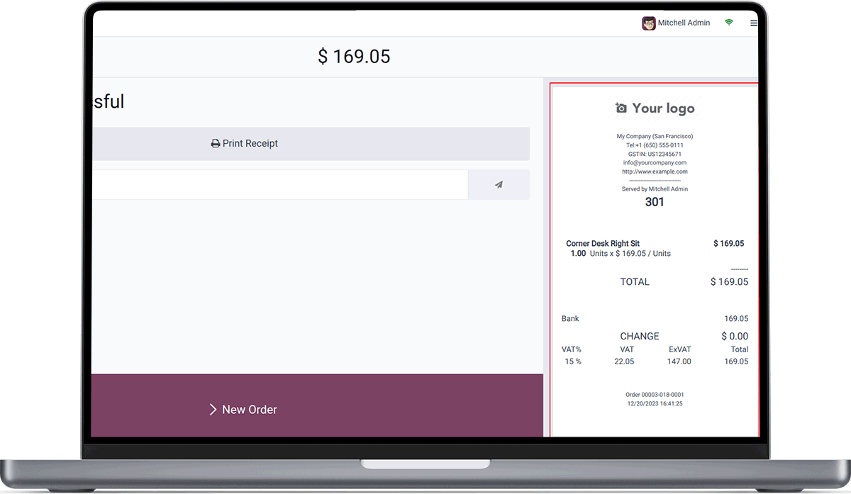 User can add the receipt designs from the backend in the menu Receipt Designs.