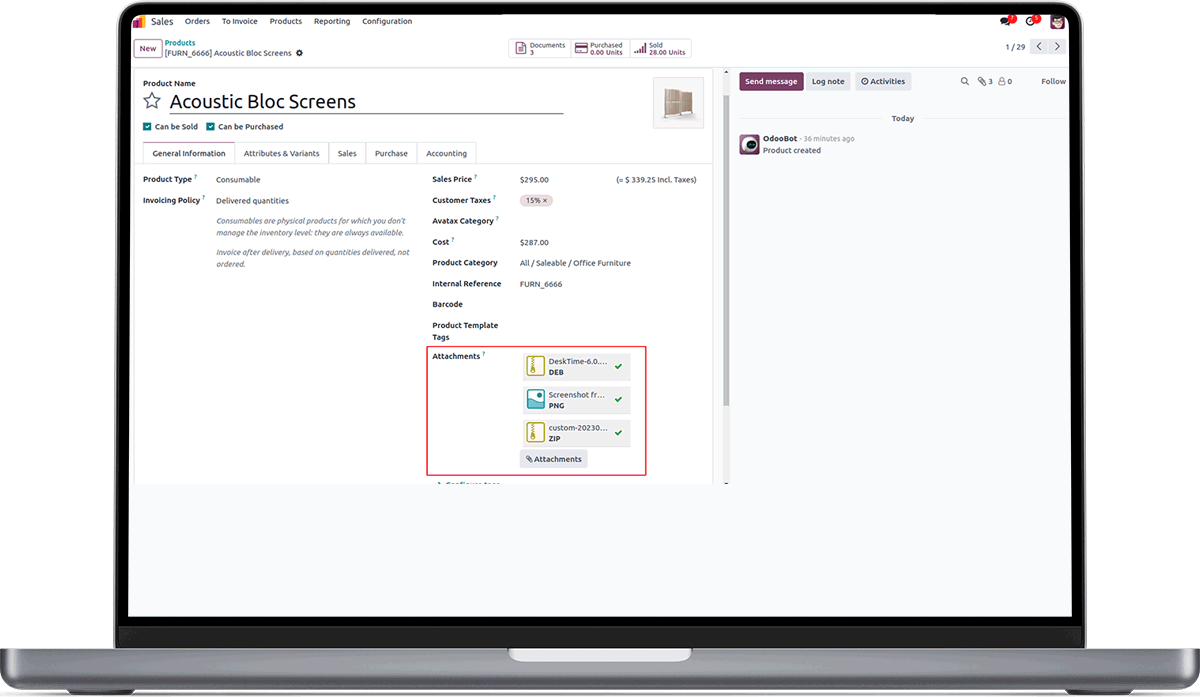 View attachments in Sale & Purchase order and also in Mail.