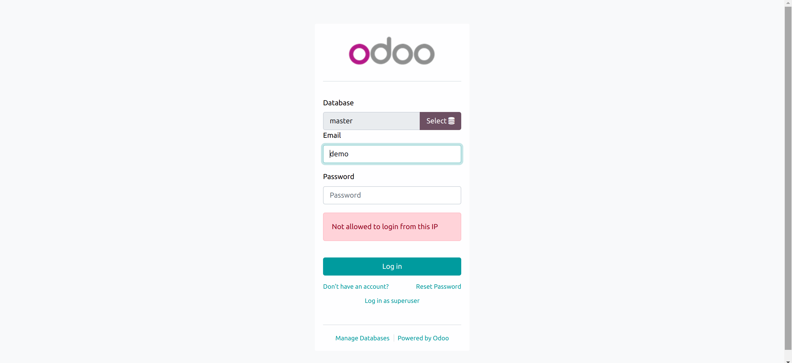 If no IP is set to user means there is not any restriction by IP. IP Address for each users can be set from users form view