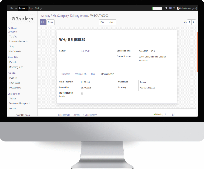 Creating the details of Gatepass with details of Vehicle number,Driver's name,Contact information of the driver,