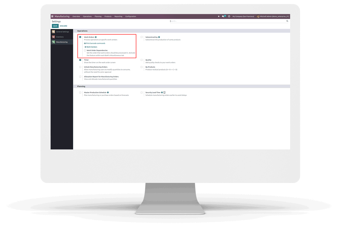 Go to Manufacturing Configuration Settings, Enable Work Orders.