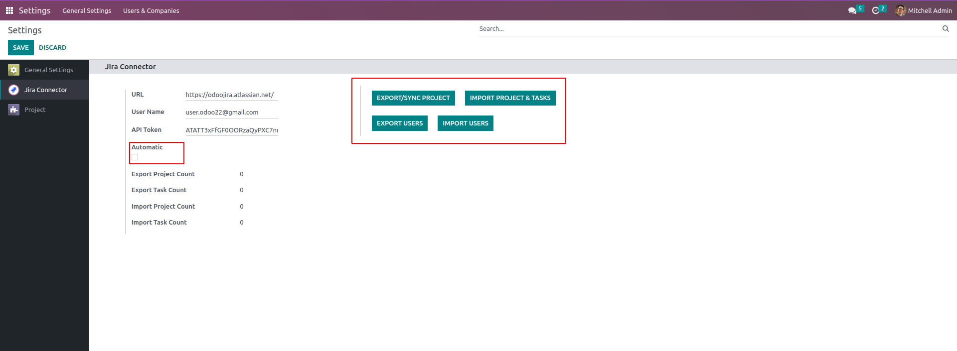 If the Export/Sync is clicked, all the project and the corresponding tasks, attachments, and the messages in the chatter are exported to Jira. If the Import Project & Task is clicked, all the projects, corresponding issues and comments are imported to Odoo. We can also import & export the users from Odoo to Jira. After that, when we create a project or task or add an attachment in the task or add messages in Odoo it will automatically create in Jira.